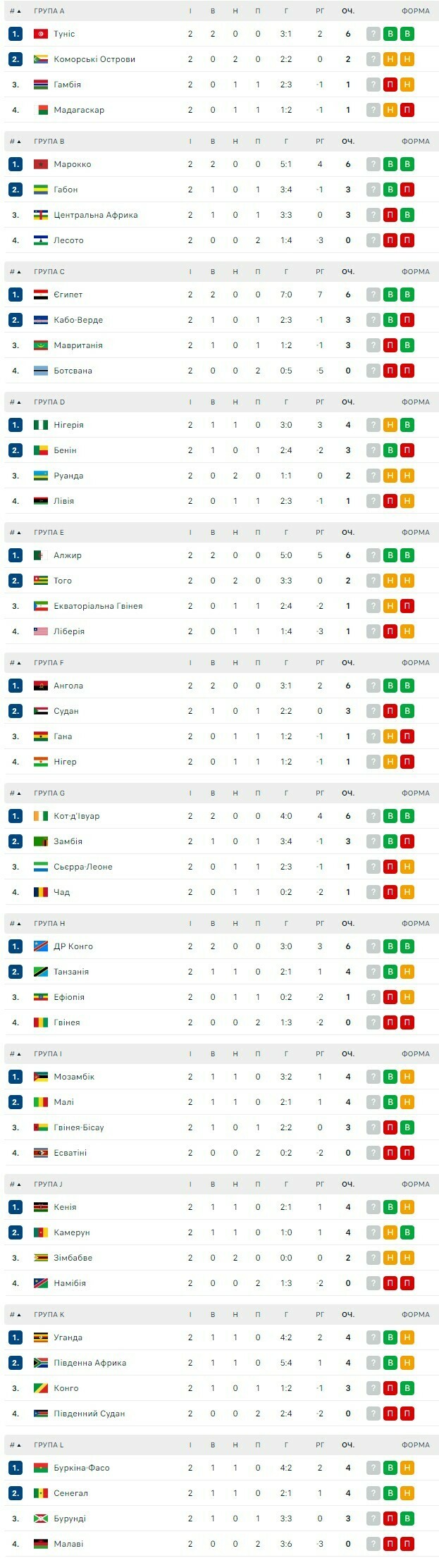 Кубок африканский наций. Таблицы квалификации. Состоялись матчи двух туров