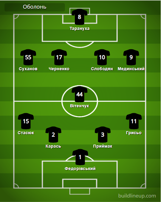 «Оболонь»: Федоровский – Стасюк, Карась, Приймак, Грисьо – Витенчук (Мороз, 72) – Суханов (Близниченко, 54), Черненко, Слободян (Груша, 54), Мединский – Тарануха (Теслюк, 13, Бычек, 54).