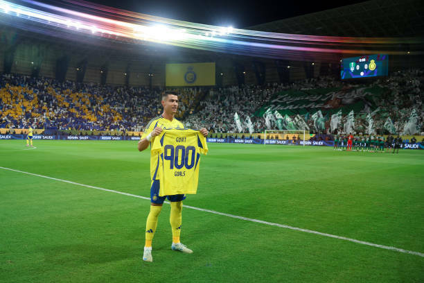 Перед стартом матча Аль-Наср устроил для Криштиану Роналду шоу. Команда поздравила легендарного португальца с 900-м забитым мячом в карьере, подарив соответствующую футболку с надписью GOAT.