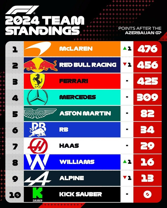 По итогам Гран-при Азербайджана команда Формулы-1 Ред Булл впервые за два сезона потеряла лидерство в Кубке конструкторов.