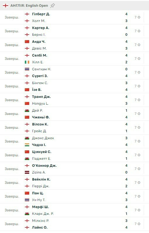 Другой фаворит турнира – английский снукерист Джадд Трамп, с трудом победил китайца Лю Хунъюй (4:3) и вышел в 1/16 финала.