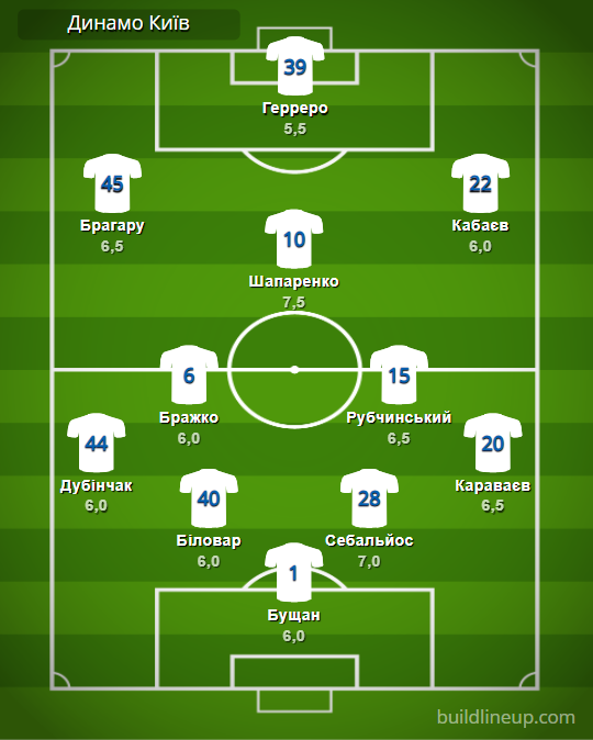«Динамо» Киев (замены): Андриевский – 6,0, Михавко – 6,0, Вивчаренко – 6,0, Пихаленок – 7,0, Ярмоленко – б/о, Ванат – б/о, Буяльский – б/о.