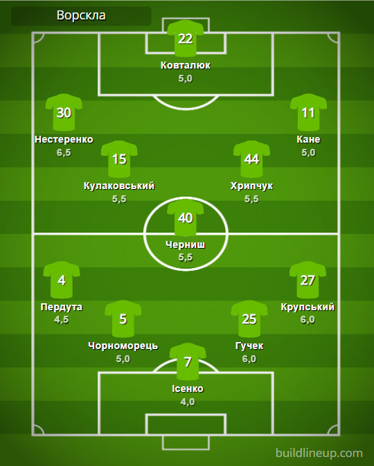 «Ворскла»: Исенко – Пердута, Черноморец, Гучек (Челядин, 28), Крупский – Кулаковский (Изотов, 74), Черныш (Ндукве, 46), Хрипчук (Островский, 90) – Нестеренко (Прус, 85), Ковталюк (Иеде, 46), Кане (Мякушко, 46).