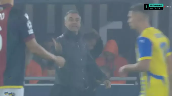 В объектив камер попала реакция наставника Шахтера Марино Пушича.