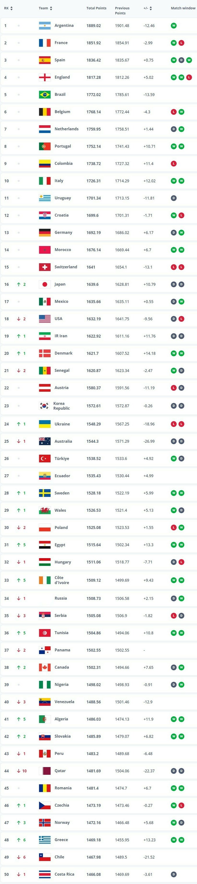 Серед європейський збірних на дві позиції нижче і на 10 пунктів менше у турків, ще на дві -нижче і на 20 менше у шведів, за якими з невеликим відставанням по очкам ідуть відразу валійці, поляки, і ще зовсім далі угорці. А вище нас серед європейців - австрійці але випереджають більш ніж на 30 пунктів. https://inside.fifa.com/fifa-world-ranking/men