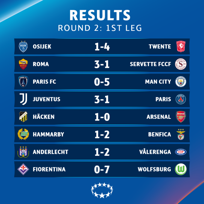 Победы одержали Рома, Твенте, Манчестер Сити, Ювентус, Бенфика, Хеккен, Волеренга, Вольфсбург, Санкт-Пельтен, Реал.