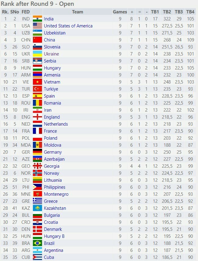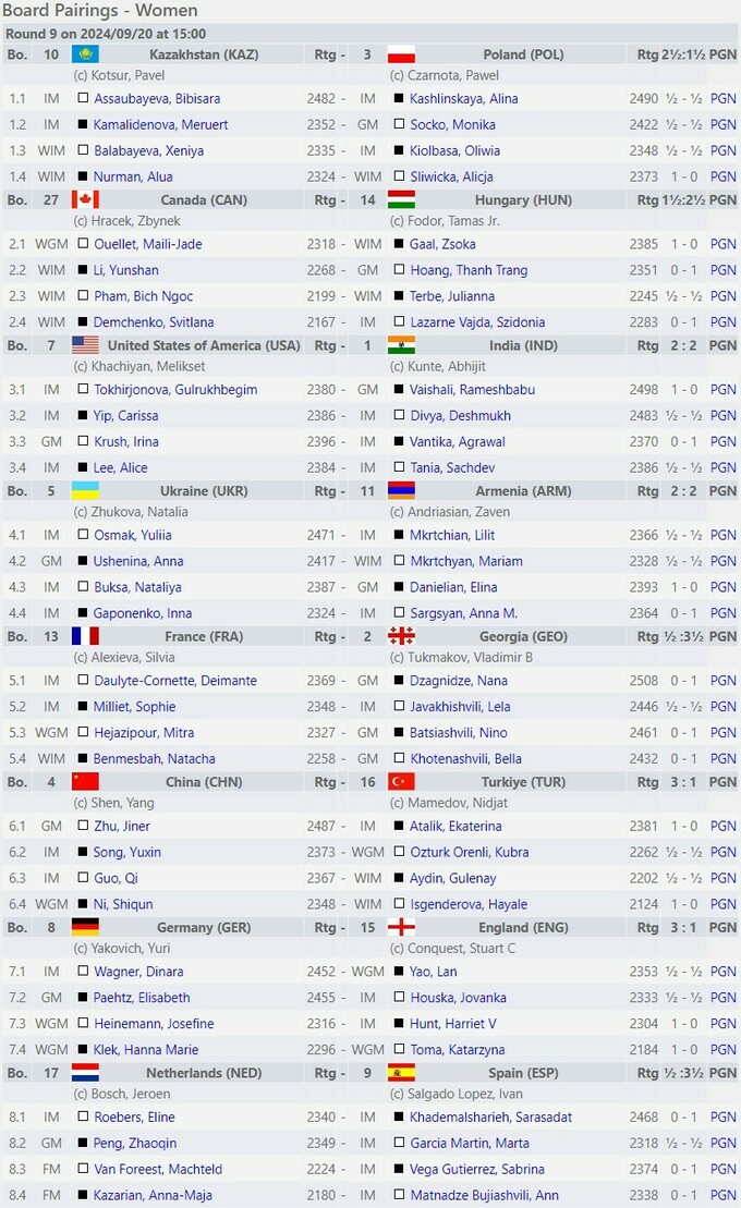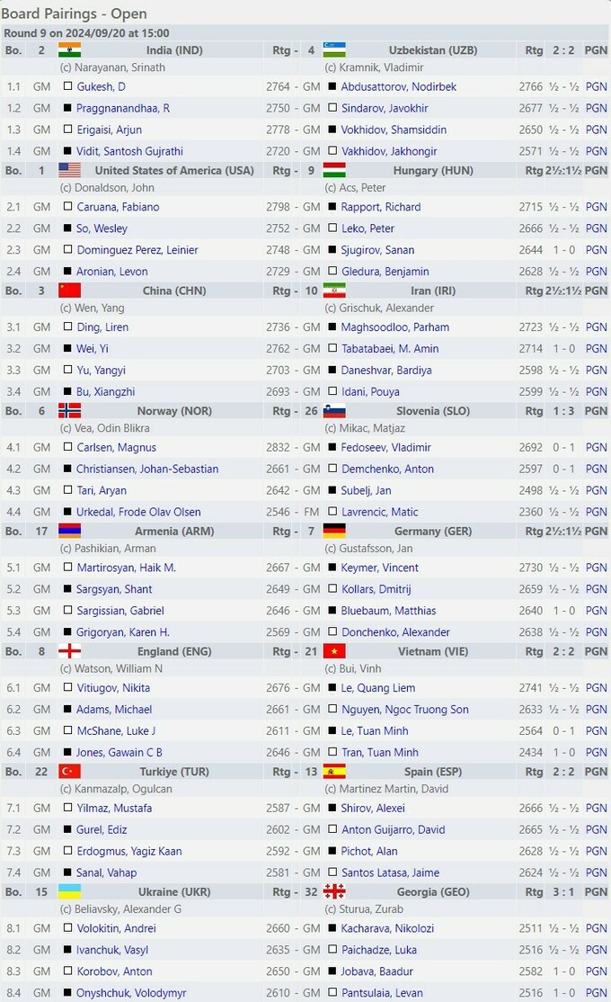 20 сентября в венгерском Будапеште состоялись матчи 9-го тура шахматной Олимпиады 2024.
