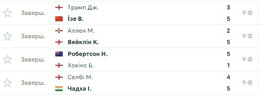 - Джадд Трамп (Англия) – У Ицзэ (Китай) – 3:5