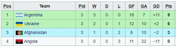 Сине-желтые завершили групповой этап на втором месте (6 очков). Выиграла группу сборная Аргентины (9 пунктов), которая обыграла Анголу (9:5).