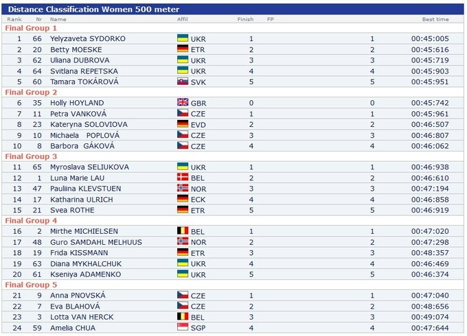 Отметим, что Дуброва также была близка к подиуму на второй дистанции первого соревновательного дня – 1500 метров, но упала под конец дистанции. А еще одна украинская финалистка на самой длинной дистанции Мирослава Селюкова финишировала четвертой.