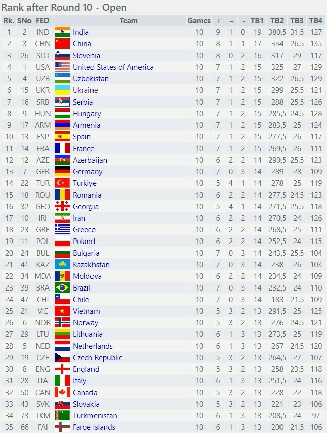 Мужская сборная Индии – досрочно впервые победитель шахматной Олимпиады