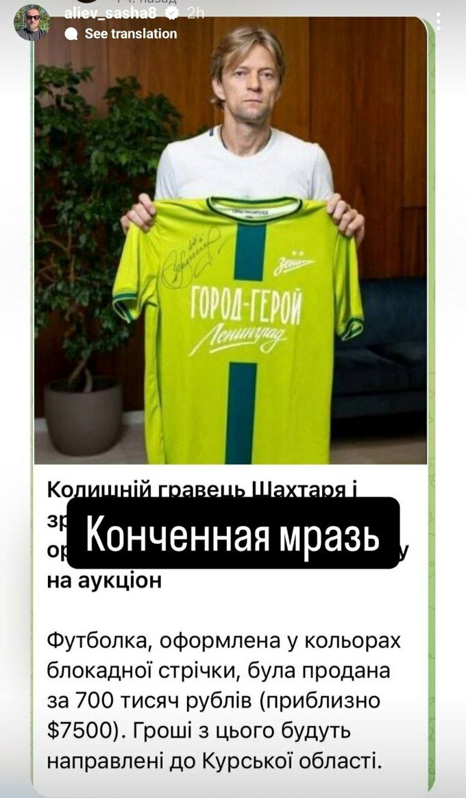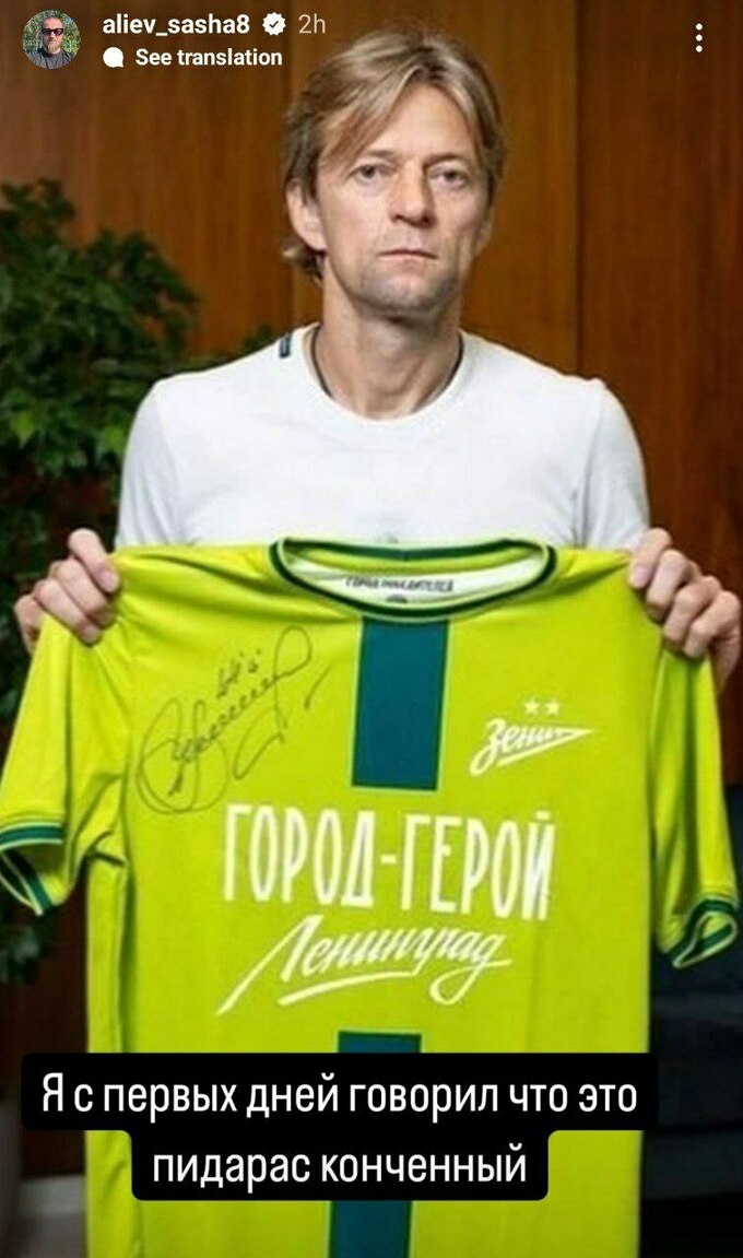 Мне очень и очень жалко, что я играл с тобой в одной сборной – в сборной Украины. Ты – русская продажная собака, которая за деньги продалась. Но запомни – у тебя здесь живут родители. Дебил ты конченный. Тимощук, ты – п***р. Запомни раз и навсегда», – сказал Алиев в Instagram.
