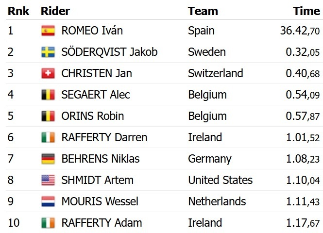 Испанский велогонщик Иван Ромео завоевал золото чемпионата мира 2024 года в индивидуальной разделке среди андеров (возрастная категория до 23 лет). Он опередил шведа Якоба Содерквиста и швейцарца Яна Кристена.