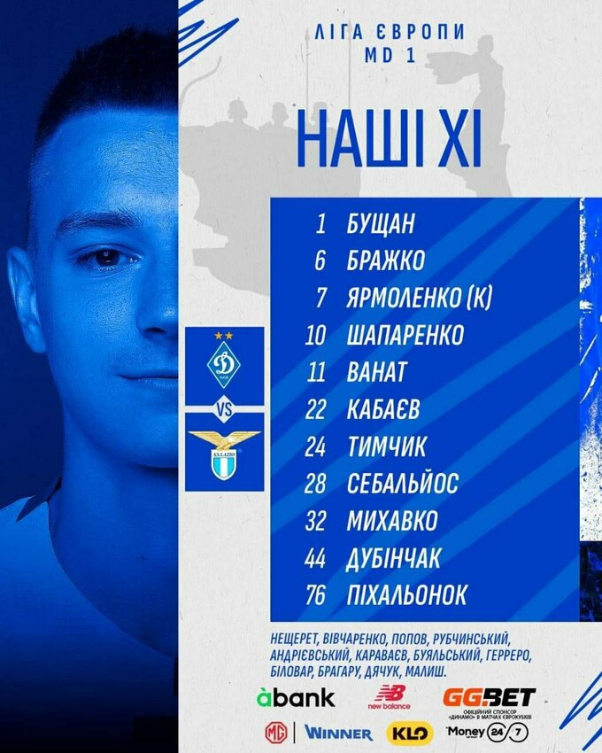 Динамо: Бущан – Тымчик, Дубинчак, Себальос, Михавко – Бражко, Шапаренко, Пихаленок, Ярмоленко, Кабаев – Ванат