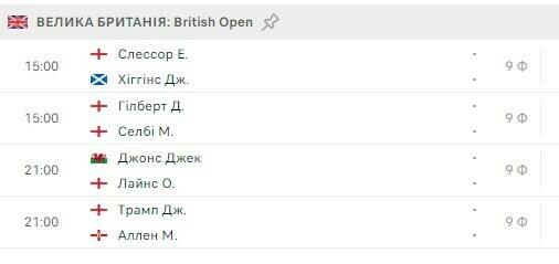 В 1/4 финала 27 сентября сыграют: Элиотт Слессор – Джон Хиггинс, Дэвид Гилберт – Марк Селби, Джек Джонс – Оливер Лайнс, Джадд Трамп – Марк Аллен.