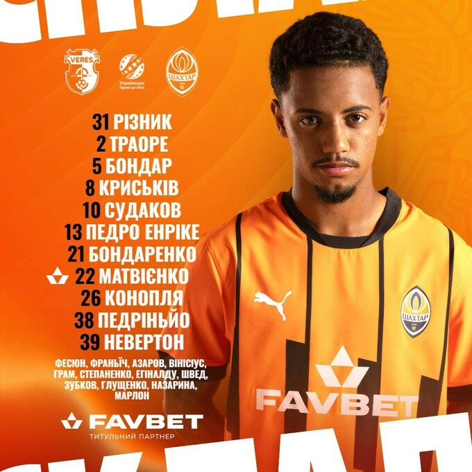 Первый матч нового тура УПЛ. Составы Вереса и Шахтера