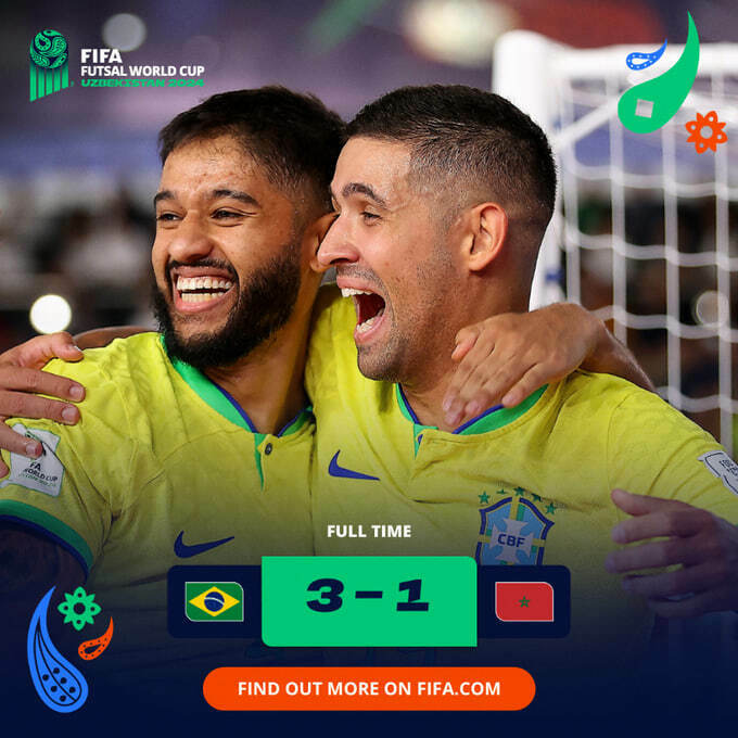 29 сентября состоялся матч 1/4 финала чемпионата мира 2024 по футзалу между сборными Бразилии и Марокко.