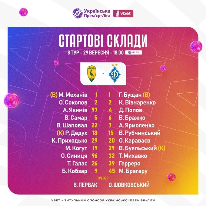 «Динамо»: Бущан, Вивчаренко, Михавко, Попов, Караваев, Бражко, Рубчинский, Брагару, Буяльский, Ярмоленко, Герреро