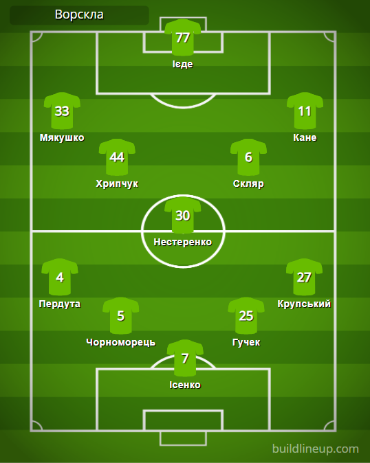 «Ворскла»: Исенко – Пердута, Черноморец, Гучек, Крупский – Хрипчук, Нестеренко (Ковталюк, 79), Скляр (Бацула, 65) – Мякушко (Черныш, 80), Иеде, Кане (Ндукве, 64).