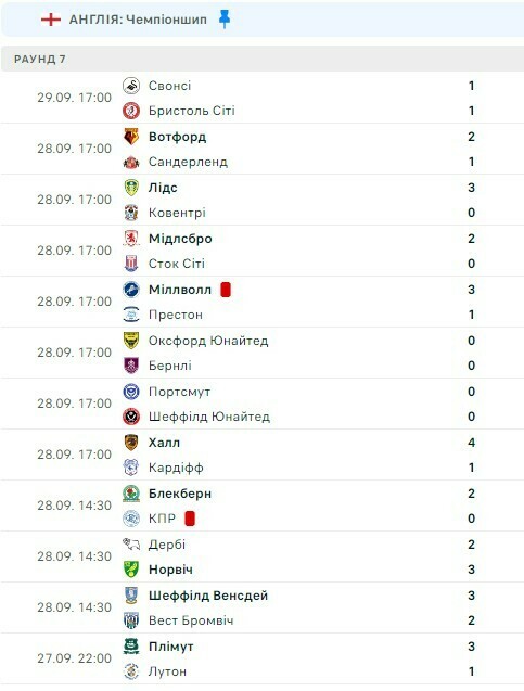 В минувший уик-энд в чемпионате Англии были сыграны матчи 7-го тура Чемпионшипа.