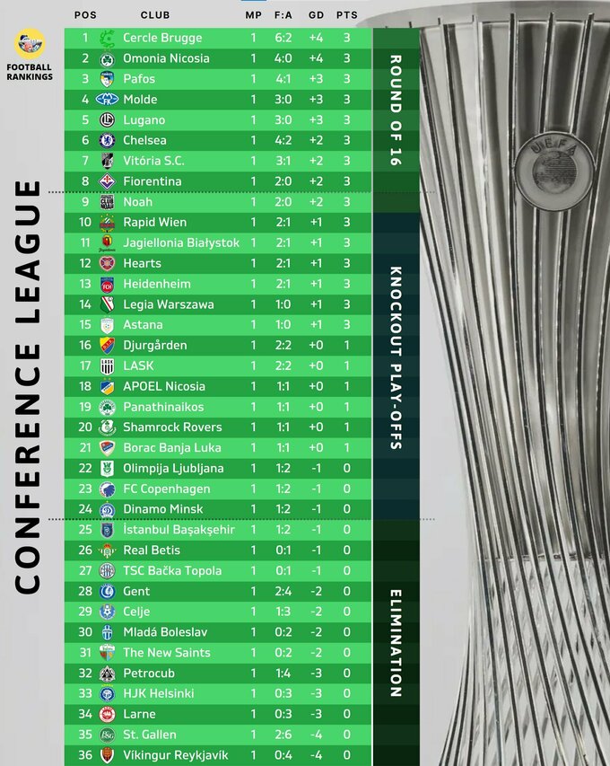 Итоги 1-го тура Лиги конференций. На каком месте находится Челси с Мудриком
