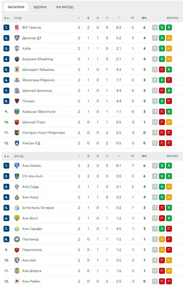 Саудовские клубы Аль-Хиляль и Аль-Ахли набрали по 6 очков из 6 и возглавляют турнирную таблицу Западной зоны.