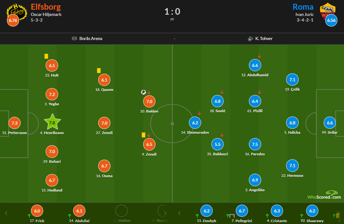 Оценки WhoScored за матч Эльфсборг – Рома (1:0)