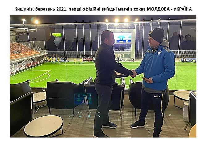 Официальный первый международный матч на выезде сборная Украины из сокка провели в Кишиневе в марте 2021 года против сборной Молдовы. На поле прекрасного спорткомплекса, в основу которого лег именно киевский опыт Города Спорта, но созданный за грант ФИФА. Руководители футбола Молдовы мудрые хозяйственники смогли объединить ресурсы ФИФА, мэрии Кишиневу и создали уникальный центр Федерации футбола Молдовы с многофункциональным стадионом для пляжного футбола и для сокки.