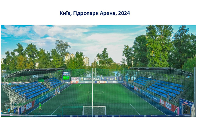 В частности, показал и стадион «Гидропарк Арена» с искусственным покрытием, где на тот момент уже регулярно шли баталии в рамках чемпионата бизнес футбола Киева «Маракана-Лиги».