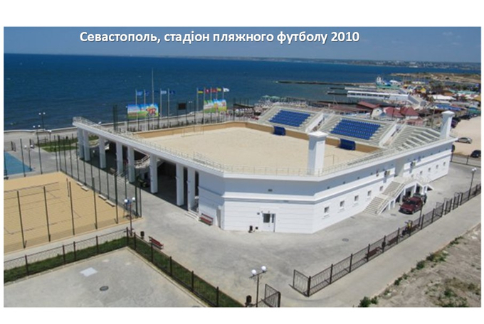 Вспоминаю и заявку Ассоциации пляжного футбола Украины на участие в тендере за право принять чемпионат мира 2011 года. Местом кандидатом утвердили Севастополь, где по инициативе АПФУ при помощи Нацбанка и содействия губернатора Сергея Владимировича Куницына была построена в 2008-2010 гг. стационарная арена. Для того времени этот стадион был настоящим шедевром. BSWW был в шоке. К тому времени все соревнования по пляжному футболу проходили на сборно-разборных стадионах, а здесь капитальное здание и еще и на берегу Черного моря.