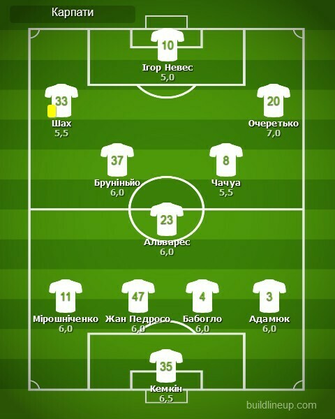 «Карпаты»: Кемкин, Мирошниченко, Жан Педросо, Бабогло, Адамюк (Полегенько, 74), Альварес, Бруниньо, Чачуа (Устименко, 91), Шах (Костенко, 74), Очеретько, Игор Невес