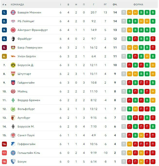 Вечером 6 октября состоялись три матча 6-го тура чемпионата Германии
