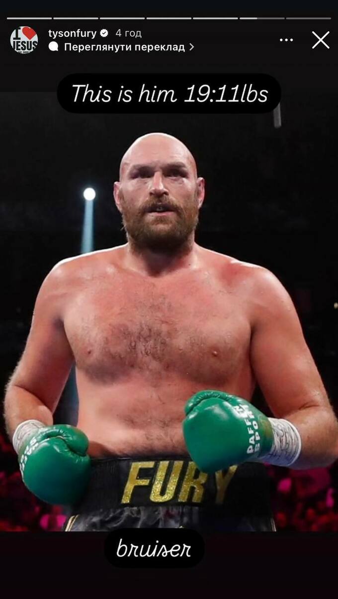 «Это он, 19st 11lbs (125 килограммов), громила», – написал Фьюри в Инстаграме.