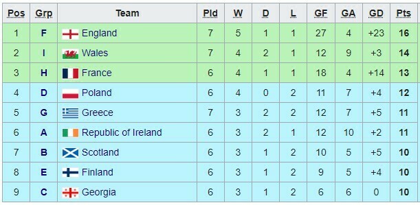 - 1. Словения – 19 очков (группа H)