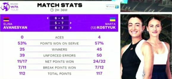 Элина Аванесян (Армения) – Марта Костюк (Украина) [13] – 6:4, 5:7, 6:7 (2:7)
