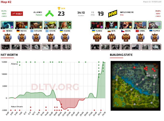 Вторая карта: Alliance отвечают мощным камбеком. Команда доминировала практически всю игру, и хотя NAVI смогли сократить разрыв на определённых этапах, этого было недостаточно для победы. Alliance выиграли со счётом 23:19, сравняв серию.
