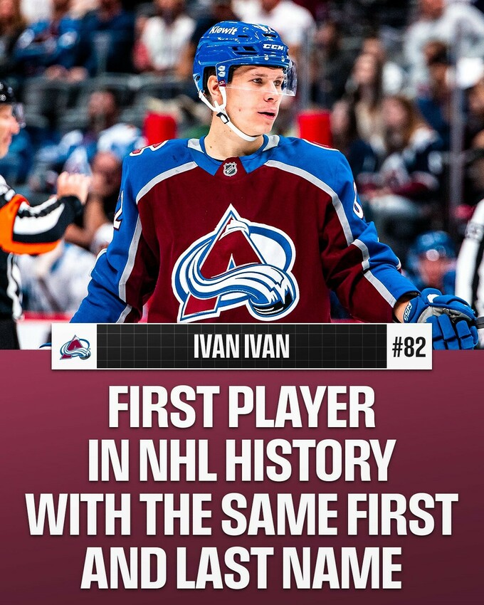 НХЛ сообщила, что впервые в истории Лиги на лед вышел игрок с одинаковым именем и фамилией. В составе Колорадо в матче регулярного сезона сыграл форвард Иван Иван.