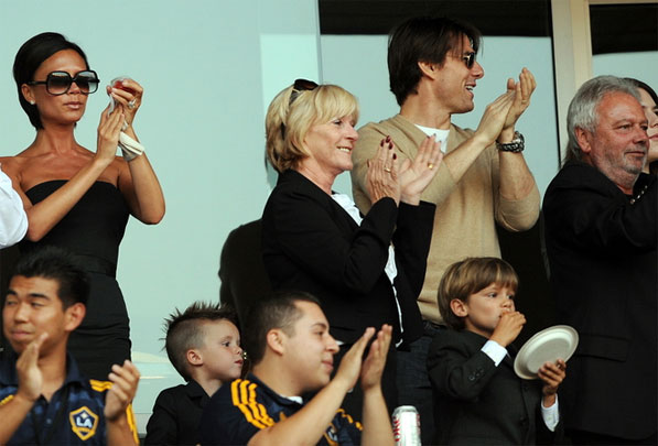 Тому Крузу и семье Бекхэма все нравится. Ромео Бекхэм сосредоточен на тарелке.