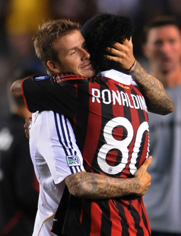 - Чё вы свистите, придурки, - пытается вразумить публику Роналдиньо, - это же Бекхэм!