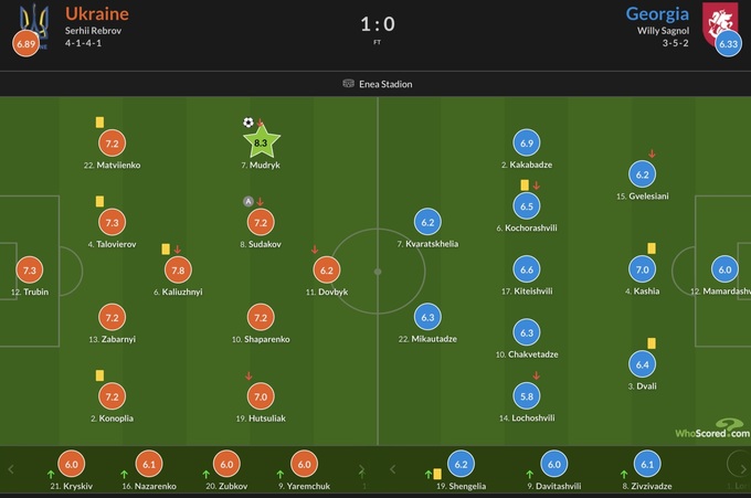 Сколько у Мудрика за супергол? Известны оценки поединка Украина – Грузия