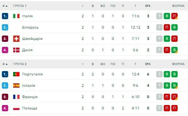 Испания и Португалия одержали по две победы и досрочно вышли в финальный раунд.