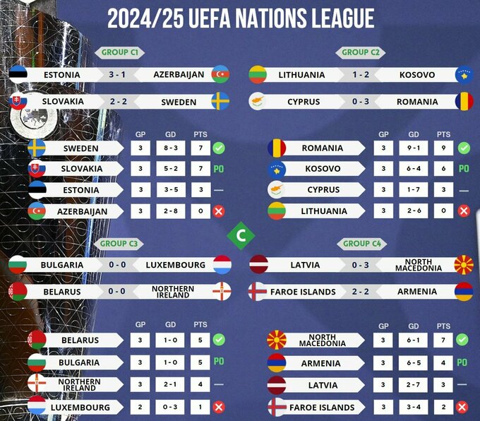 Пройден экватор. Турнирные таблицы Лиги наций после 3 туров