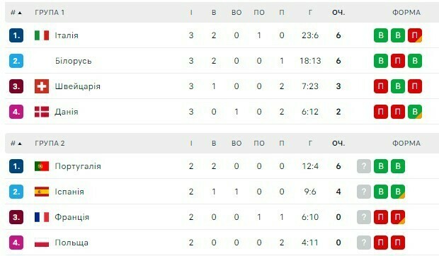Определены все 4 обладателя путевок на ЧМ от Европы: Испания, Португалия, Италия и беларусь.