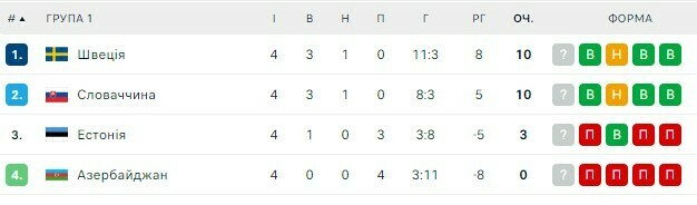Швеция переиграла Эстонию (3:0) и вместе со Словакией возглавляет группу C1.