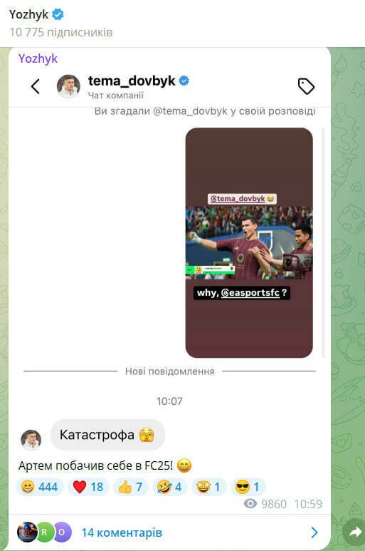 Новую карточку Довбика опробовал лучший и самый титулованный фифер Украины Евгений Мостовик (Yozhyk). Он и обнародовал кадр с неудачным геймфейсом Артема: