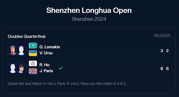 Григорий Ломакин (Казахстан) / Вадим Урсу (Украина) – Рей Хо (Тайвань) / Джошуа Перис (Великобритания) – 3:6, 2:6