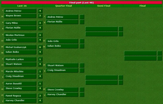 Четвертьфиналы пройдут 18 октября. Юлиан Бойко сыграет против Жоау Грило из Португалии.