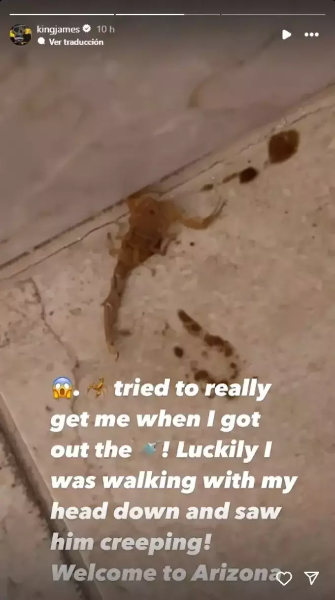«Скорпион пытался укусить меня, когда я был в душе. К счастью, я шел с опущенной головой и увидел, как он ползает. Добро пожаловать в Аризону», - написал Леброн, сопродив этот месседж фото скорпиона.
