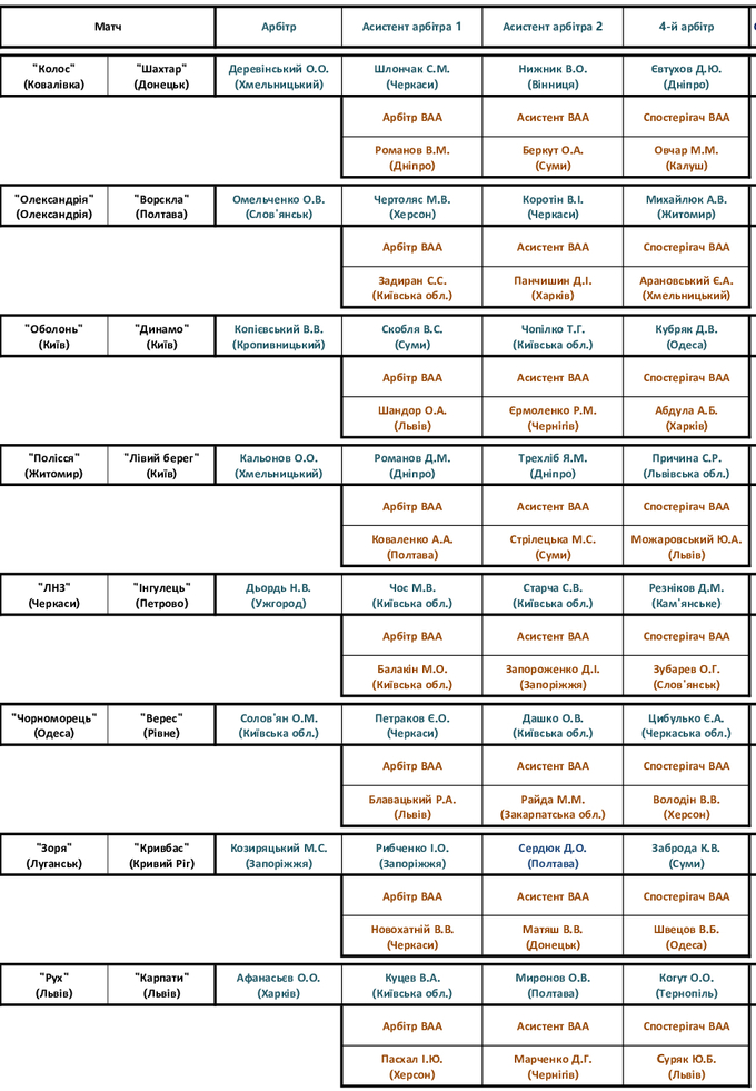Комитеты Украинской ассоциации футбола назначили официальных лиц на очередной тур.