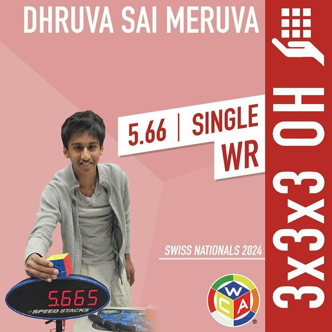 Друва Сай Мерува из Швейцарии (ранее представлявший Индию) побил мировой рекорд в сборке кубика Рубика 3x3x3 одной рукой, показав невероятное время – 5,66 секунды.